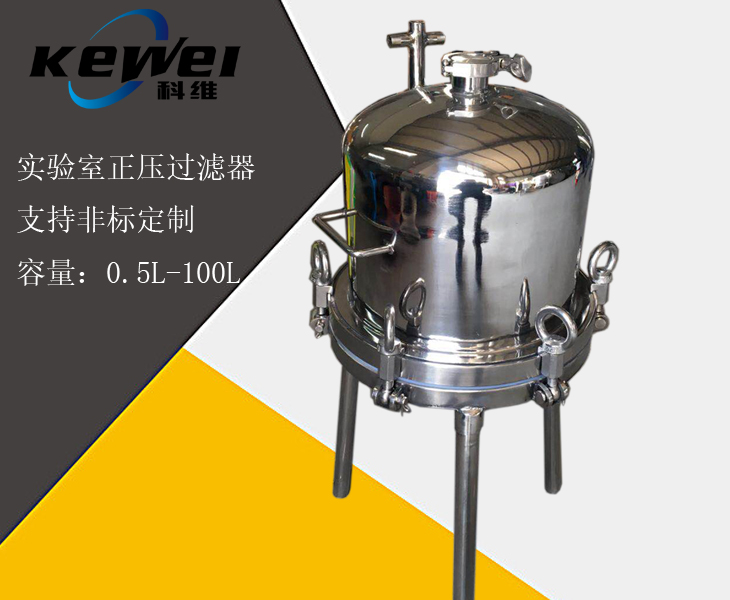 产品用途:我公司生产的不锈钢桶式正压过滤器,适用于小容量科研、医 院、实验室等单位,对各种液体的澄清除菌处理,本滤器特别 适用于各种孔径微孔滤膜,可以和真空泵和空气压缩机配套作 抽滤和压滤,又可和一般加压泵配套使用,达到一机多用的优 点,是科研人员解决少量液体过滤化验的好帮手。